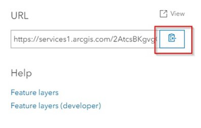 When you go to set up the connection for 2-way sync you will need to supply a URL that we can use to connect to ArcGIS. This can be obtained by scrolling to the bottom of the Overview page for the Layer and copying the URL to the clipboard: