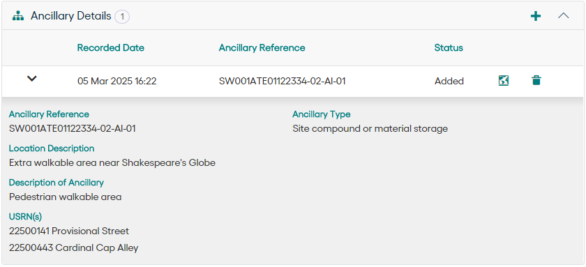Ancillary Record can be removed using Bin button and can be viewed on map using Map button on the right of Ancillary record status.